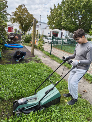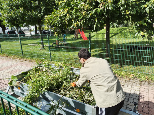 Nach den Sommerferien sind unsere Schülerinnen und Schüler wieder mit viel Engagement im Schulgarten aktiv. Gemeinsam wird geerntet, gemäht und gejätet.